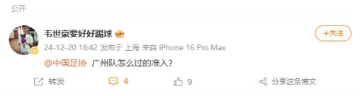 有內(nèi)情?韋世豪質(zhì)問中國足協(xié):廣州隊怎么過的準(zhǔn)入? ???